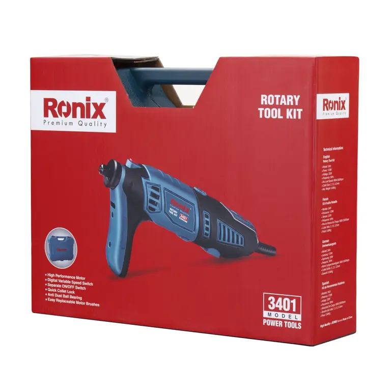 - مجهز به یک دسته جانبی ارگونومیک طراحی شده توسط رونیکس که استفاده از این فرز در طولانی مدت را آسان میکند
