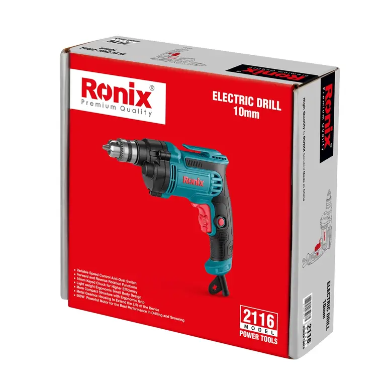 سهنظام آچاری ۱۰ میلیمتری برای بهرهوری بالاتر موتور قدرتمند ۵۰۰ واتی برای بهترین عملکرد در سوراخکاری و پیچکاری طراحی بدنه کوچک و ارگونومیک با وزن سبک ساختار جمعوجورتر با دسته ارگونومیک بدنه گیربکس فلزی برای افزایش طول عمر دستگاه کنترل سرعت متغیر قابلیت چرخش راستگرد و چپگرد کلید ضد گردوغبار